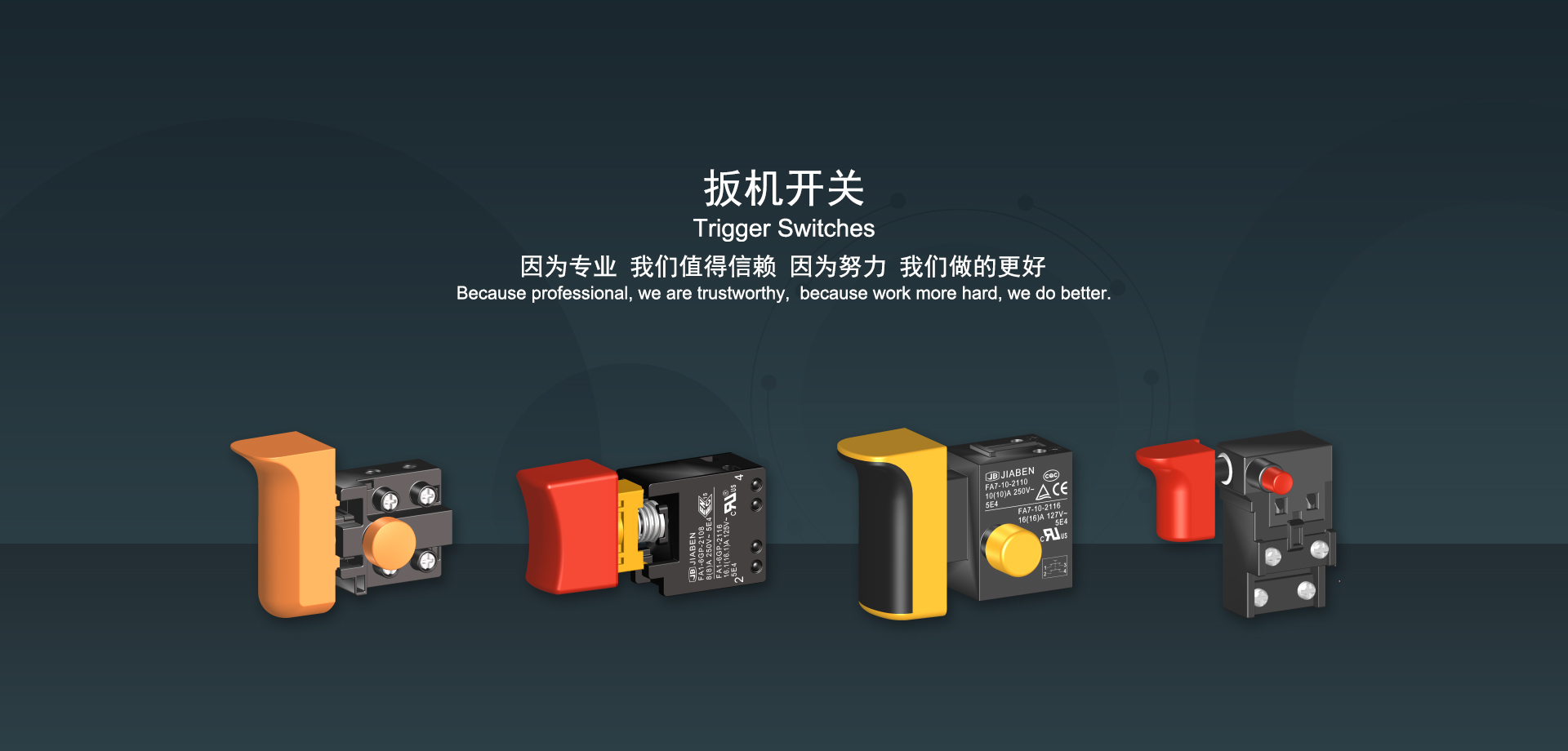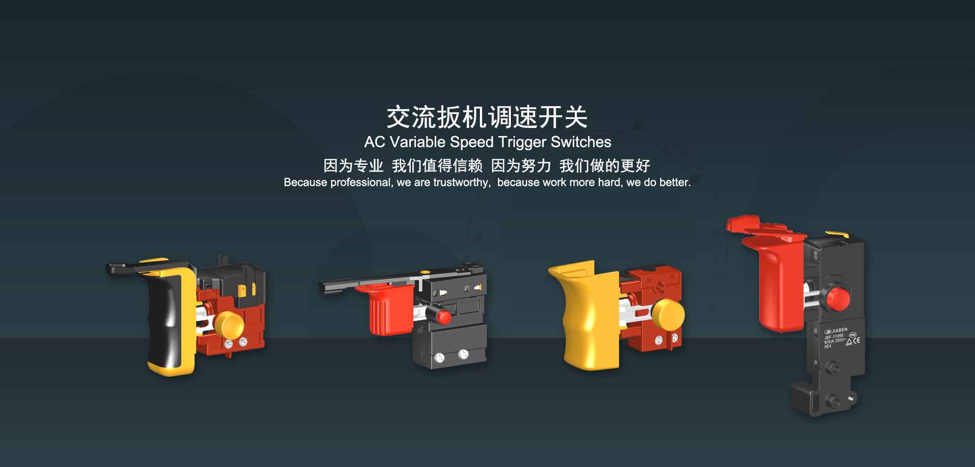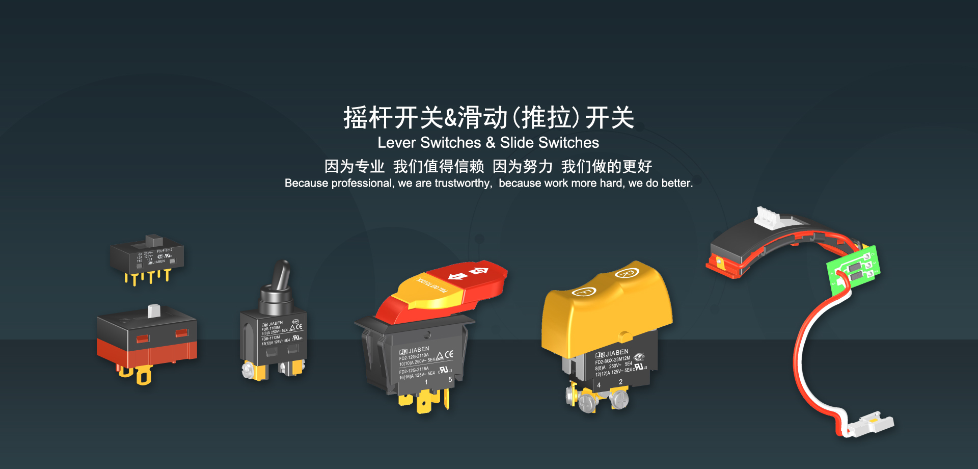 浙江佳奔電子有限公司始建于1986年,坐落于浙江省樂(lè)清市虹橋鎮(zhèn)東電子信息產(chǎn)業(yè)園內(nèi),現(xiàn)有職工700多人,資產(chǎn)總額超3億元。公司主要經(jīng)營(yíng)“JIABEN”牌微動(dòng)開關(guān)、蹺板開關(guān)、按鈕開關(guān)、扳機(jī)開關(guān)、調(diào)速開關(guān)和電位器開關(guān)等各類交、直流器具開關(guān)和各類交、直流線路板模塊等產(chǎn)品,主要應(yīng)用于交、直流電動(dòng)工具、電動(dòng)園林工具、清潔器具、家用電器和小型機(jī)床等行業(yè),是集產(chǎn)品設(shè)計(jì)、研發(fā)、制造、銷售和服務(wù)于一體的國(guó)家高新技術(shù)企業(yè)。JIABEN was founded in 1986, located in East Electronic Information Industry Park, Hongqiao Town, Yueqing City, Zhejiang Proviance, existing staff more than 700 peoples, more than 300 million RMB worth of assets. Company is mainly engaged in "JIABEN" brand Micro Switch, Rocker Switch, Push-button Switch, Trigger Switch, Speed Regulating Switch, Potentiometer Switch and other kinds of appliance switch and all kinds of AC or DC circuit board module, such as more than 100 series, 8000 kinds of models of products, mainly used in AC or DC Power-tools, Power Gardening Tools, Cleaning Appliances, Household Appliances and Small Machine Tool and other industries, is the collection product design, research and development, manufacturing, sales and service in one of the national high and new technology enterprise.