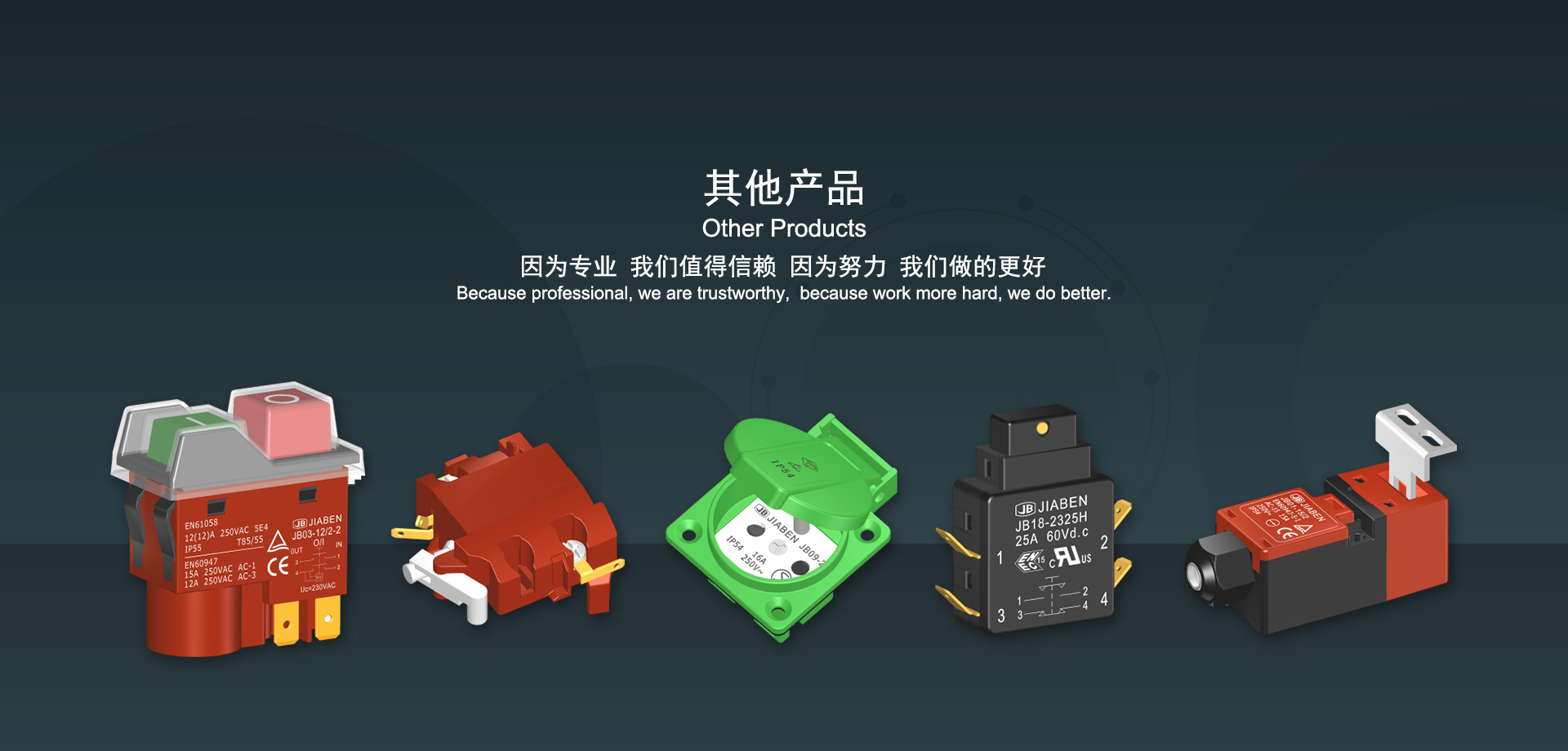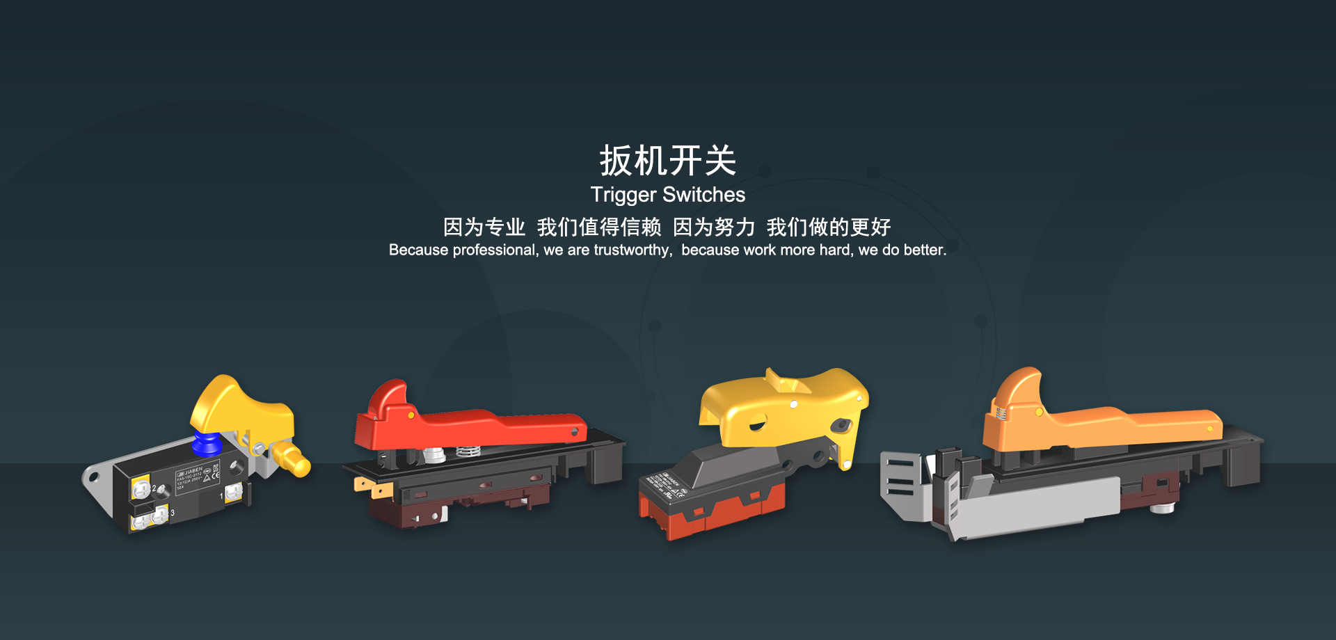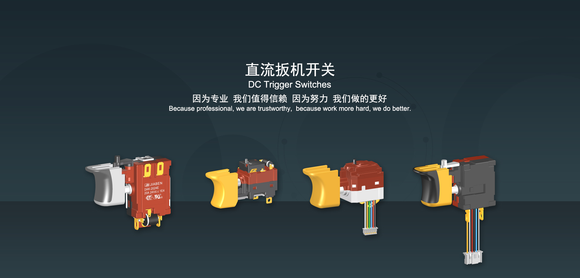 浙江佳奔電子有限公司始建于1986年,坐落于浙江省樂(lè)清市虹橋鎮(zhèn)東電子信息產(chǎn)業(yè)園內(nèi),現(xiàn)有職工700多人,資產(chǎn)總額超3億元。公司主要經(jīng)營(yíng)“JIABEN”牌微動(dòng)開關(guān)、蹺板開關(guān)、按鈕開關(guān)、扳機(jī)開關(guān)、調(diào)速開關(guān)和電位器開關(guān)等各類交、直流器具開關(guān)和各類交、直流線路板模塊等產(chǎn)品,主要應(yīng)用于交、直流電動(dòng)工具、電動(dòng)園林工具、清潔器具、家用電器和小型機(jī)床等行業(yè),是集產(chǎn)品設(shè)計(jì)、研發(fā)、制造、銷售和服務(wù)于一體的國(guó)家高新技術(shù)企業(yè)。JIABEN was founded in 1986, located in East Electronic Information Industry Park, Hongqiao Town, Yueqing City, Zhejiang Proviance, existing staff more than 700 peoples, more than 300 million RMB worth of assets. Company is mainly engaged in "JIABEN" brand Micro Switch, Rocker Switch, Push-button Switch, Trigger Switch, Speed Regulating Switch, Potentiometer Switch and other kinds of appliance switch and all kinds of AC or DC circuit board module, such as more than 100 series, 8000 kinds of models of products, mainly used in AC or DC Power-tools, Power Gardening Tools, Cleaning Appliances, Household Appliances and Small Machine Tool and other industries, is the collection product design, research and development, manufacturing, sales and service in one of the national high and new technology enterprise.